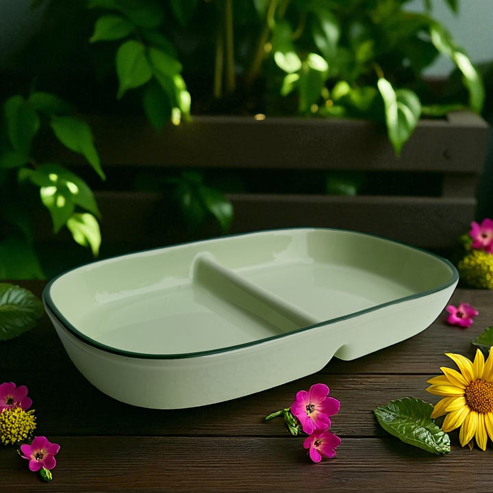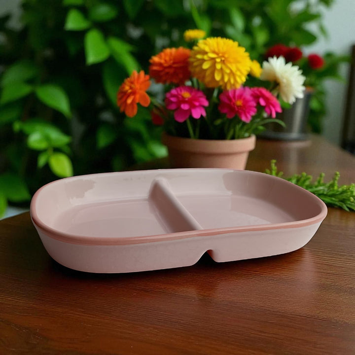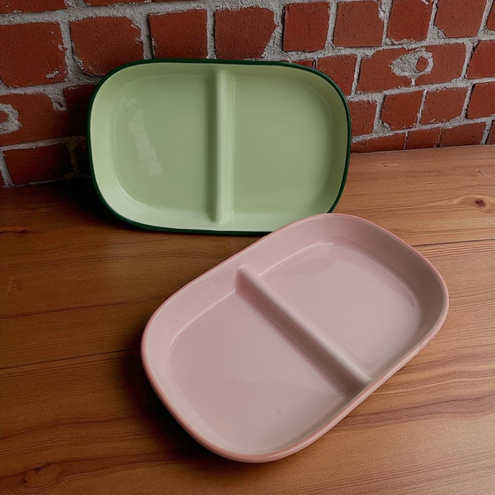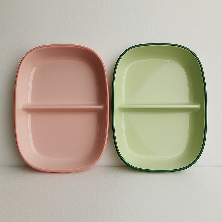 Simplify mealtime with these sleek and functional two-compartment plates – ideal for kids and adults alike. With a smooth, glossy finish and divided sections, these plates are perfect for portion control and keeping food items separate.
