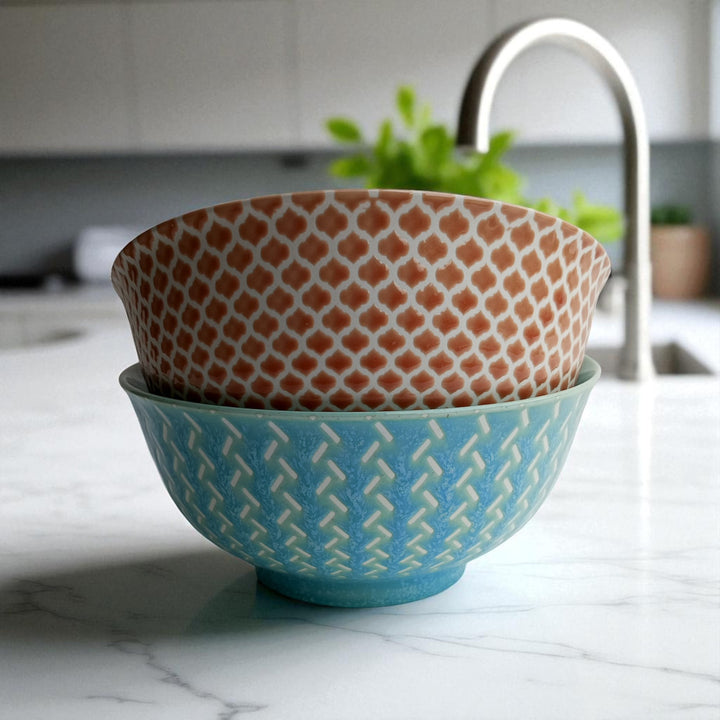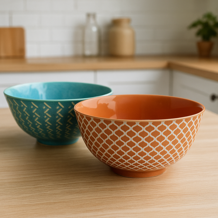 Bring charm and craftsmanship to your table with our handcrafted ceramic serving bowls. Featuring vibrant patterned exteriors and glossy glazed interiors, these bowls are perfect for serving salads, pasta, snacks, or even as a decorative accent on your counter. Their 8-inch size (20.5 x 20.5 x 9.5 cm / approx. 8 x 8 x 3.7 inches) makes them a versatile pick for daily use or entertaining guests.
