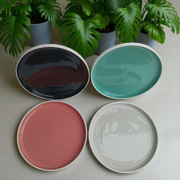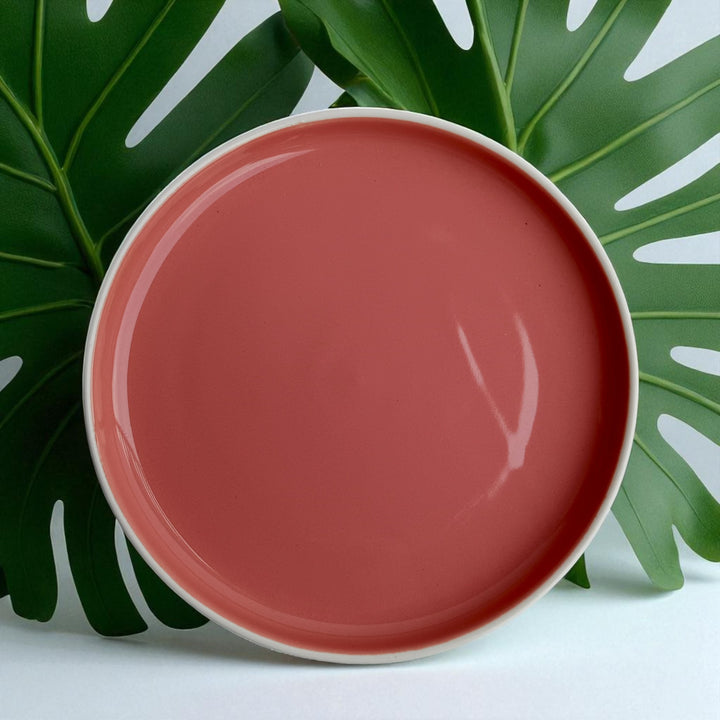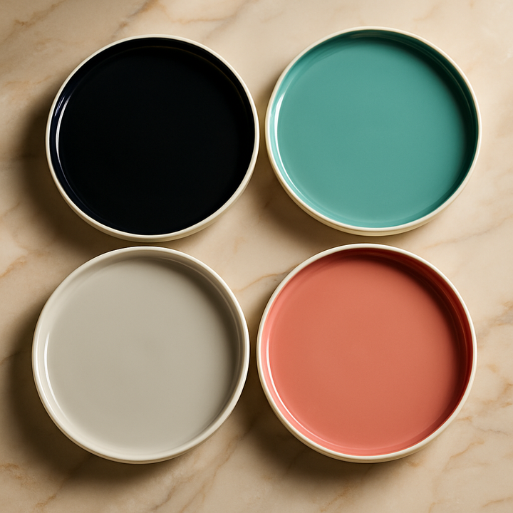 Add a pop of color and class to your table setting with our 8-inch (20 cm) glossy round ceramic plates. Designed with a modern minimalist white rim and bold, high-gloss center, these plates are perfect for serving everything from breakfast to desserts. Available in four vibrant shades — black, mint green, blush pink, and soft grey — they bring effortless charm to daily dining and special occasions alike.