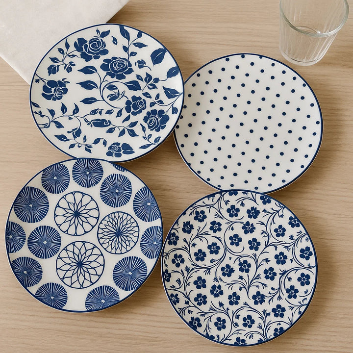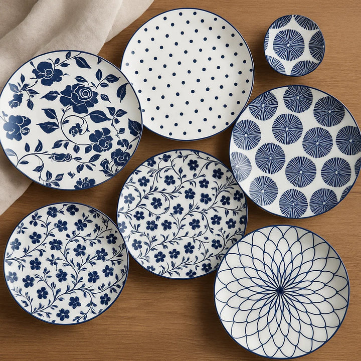 Add timeless charm to your table with these 19.5cm blue and white patterned ceramic plates. From intricate florals to modern polka dots and geometric petals, each plate brings a distinct personality to your dining space. Whether you're hosting or serving daily meals, these plates offer elegance with a touch of tradition. Crafted from durable ceramic and finished with a smooth glaze, they’re perfect for everyday use or special gatherings.