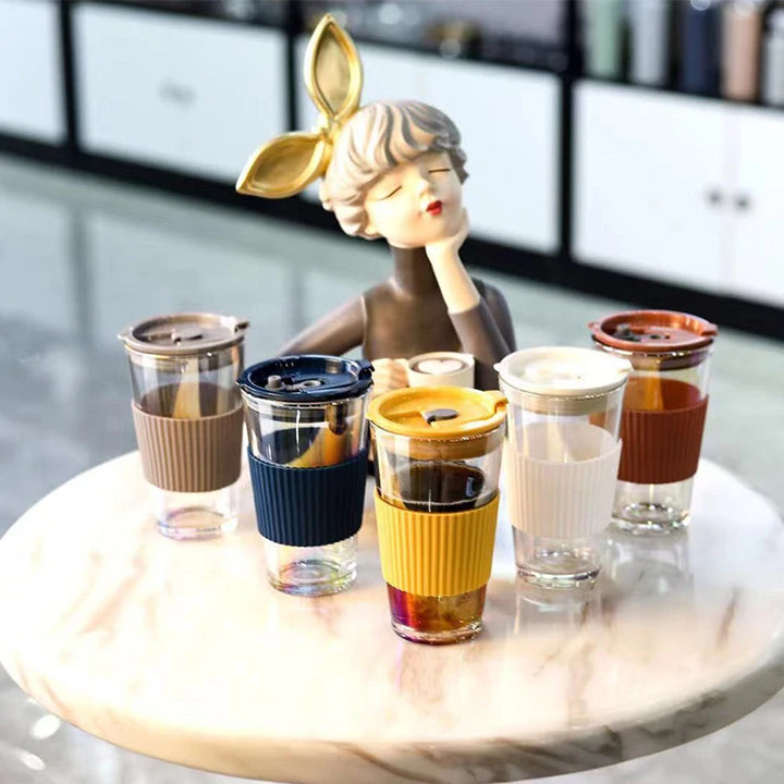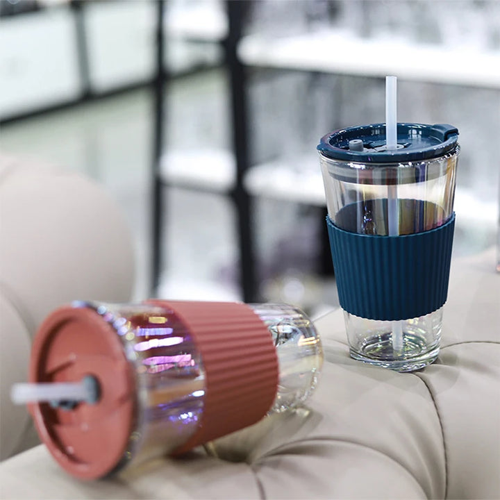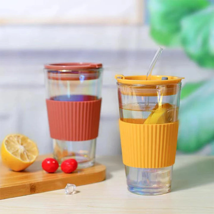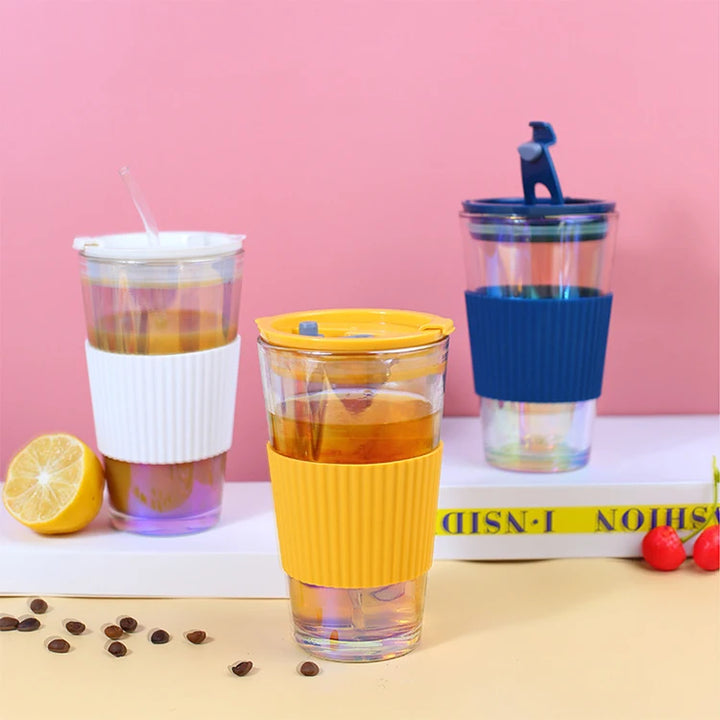 Sip in style with these iridescent 450ml glass tumblers featuring a matching silicone grip and secure lid. Ideal for both hot and cold drinks, the shimmering body adds a fun pop to your daily hydration routine—whether you're at the beach or your desk.