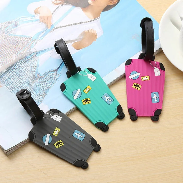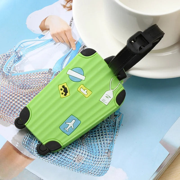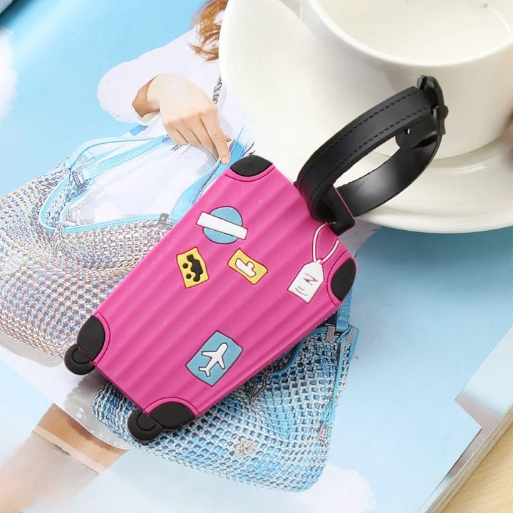Spot your luggage in style! These suitcase-shaped luggage tags are made from flexible silicone and come in vibrant colors like pink, green, and blue. Each tag includes fun travel-themed icons and a secure black strap to attach to any suitcase, backpack, or duffel. Perfect for jetsetters, these tags help you quickly identify your bags while adding a touch of personality.