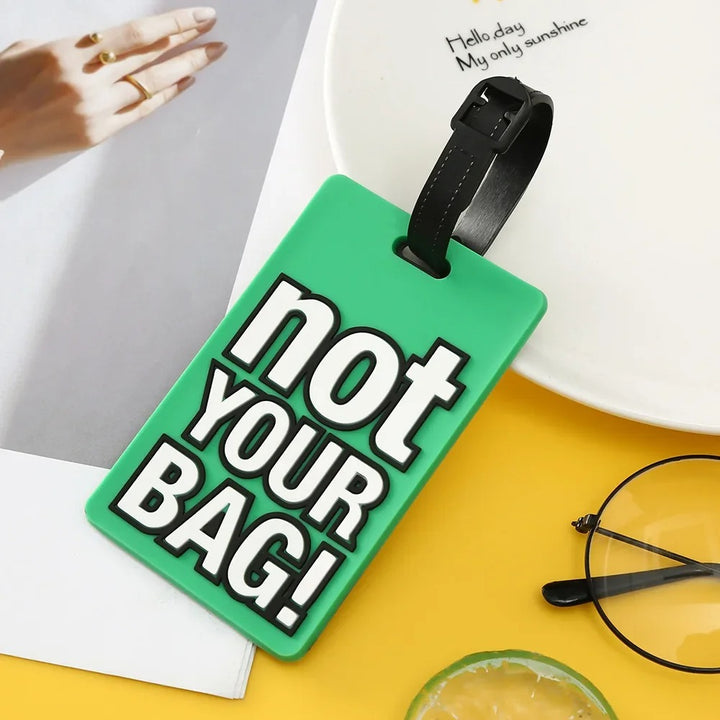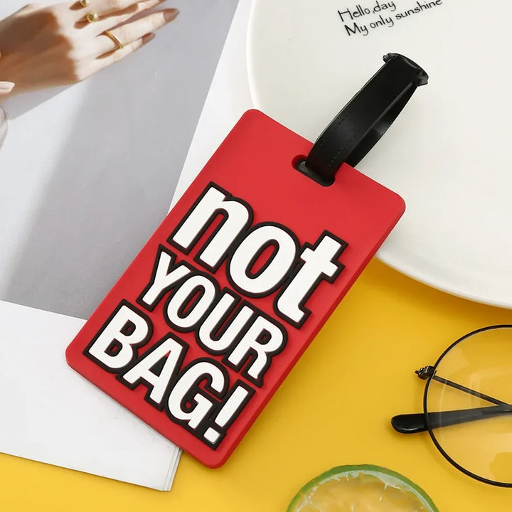 Make your suitcase stand out from the crowd with these bold and cheeky “Not Your Bag!” luggage tags. Made from flexible silicone, these rectangular tags are not only fun but functional—keeping your travel information safe and easy to spot. Whether you're jet-setting across the world or sending kids to school, these tags add personality and peace of mind to every bag.