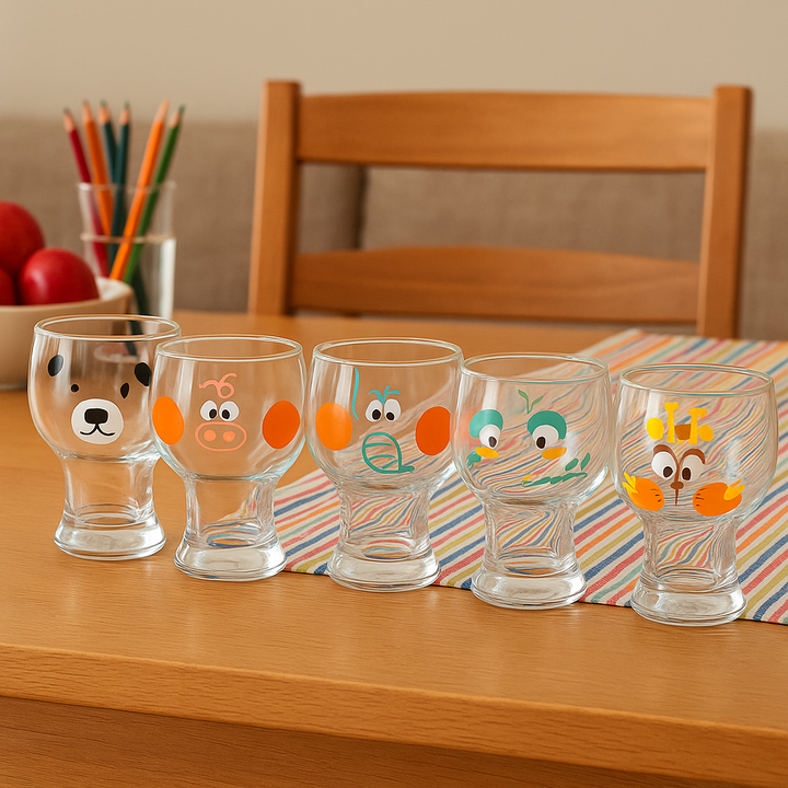 Make every sip a smile with our 350ml (11.8 oz) Kids Glass Cups! Featuring adorable cartoon faces with vibrant colored cheeks, these cups are designed to turn drink time into fun time. Each cup is made from durable, thick glass that’s easy for little hands to grip and hard to tip over, making it perfect for juice, milk, smoothies, or water.