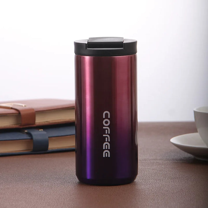 Featuring a sleek matte finish and minimalist “COFFEE” text detail, it's as aesthetic as it is functional. The flip-top lid ensures a spill-free experience, while the stainless steel inner lining keeps your drinks at just the right temperature.