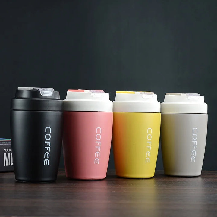 Sip in style with our compact 450ml Stainless Steel Coffee Tumbler – designed to keep your brew hot (or cold) and your days running smoothly. Available in 4 trendy colours – matte black, blush pink, dove grey, and sunshine yellow – each tumbler features a secure flip-lock lid and double-wall insulation to maintain your drink’s temperature for hours.