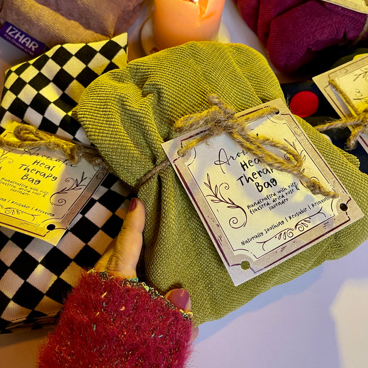 Handcrafted with natural rice and flaxseed for soothing heat therapy.